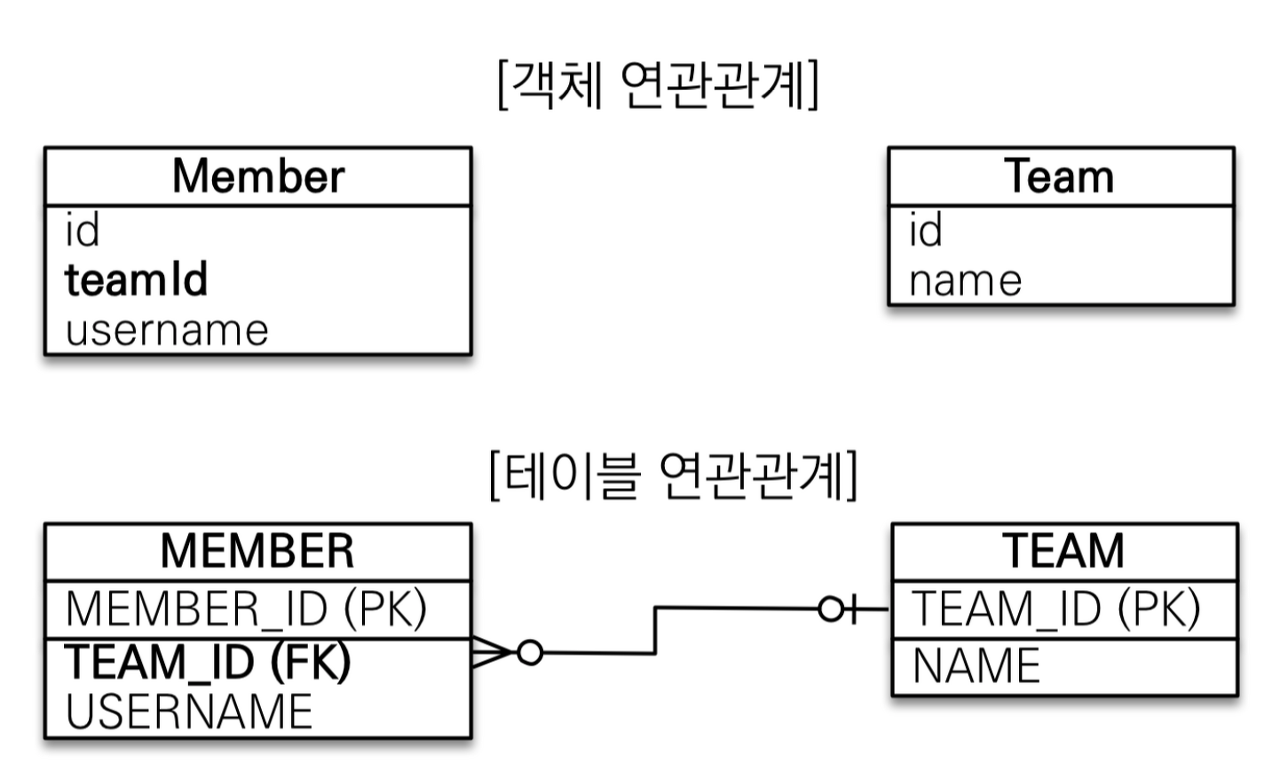 여기서 한 가지 더 알고가야 할 개념은 "객체 연관관계"와 "테이블 연관관계"의 차이점이다.(위 이미지 참고)