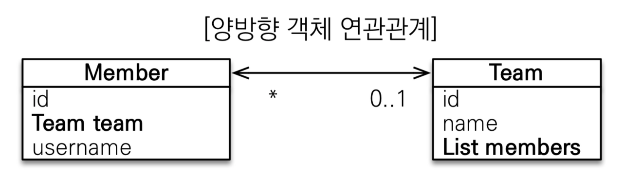 그리고 객체 간의 연관관계는 단방향 연관관계가 두개가 존재한다고 보는 것이 편하다.