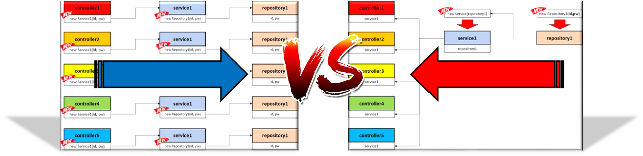 이 개념이 드디어 DI(의존성 주입, Dependency Injection), IoC(제어의 역전, Inversion of Controll)이
